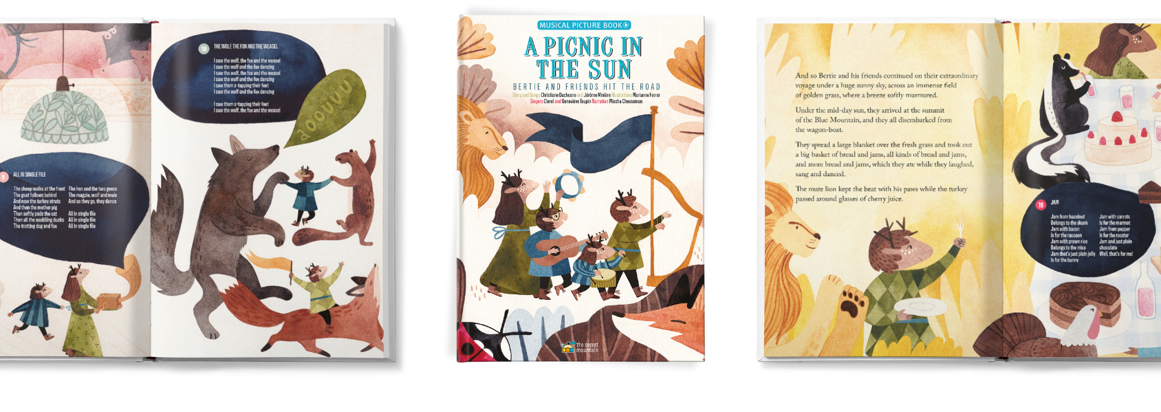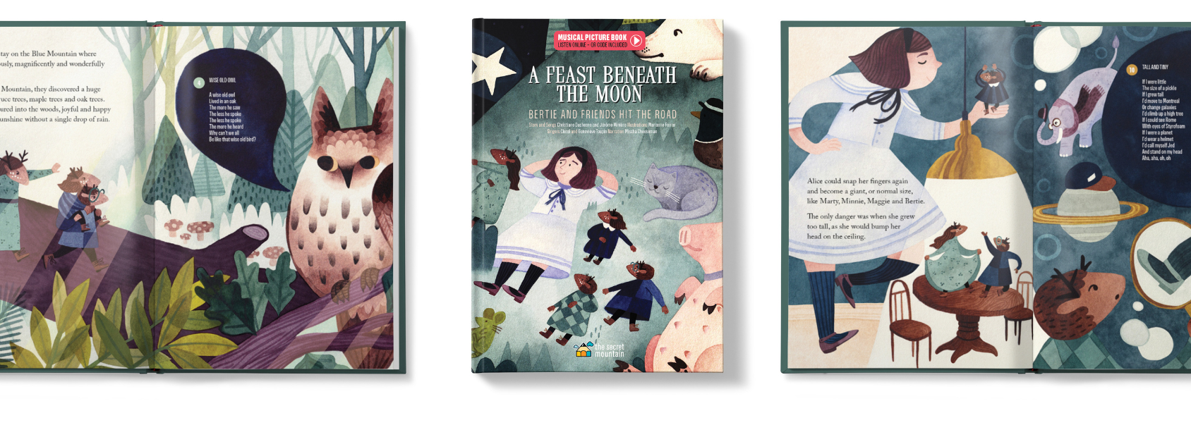In this sequel to A Picnic in the Sun, Bertie and gang explore Blue Mountain with their new friend Alice. On their adventures they meet a wise old owl, a really big dog, a baby rat, and many more animals who join them for a feast beneath the moon and stars. Available for preorder.