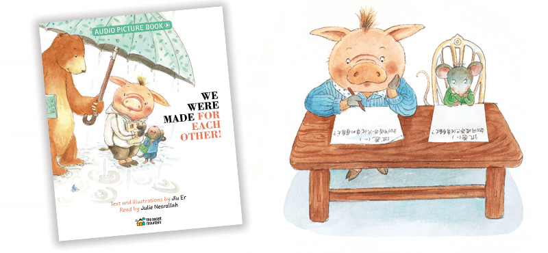 The Secret Mountain has just published a charming, original audio picture book by Chinese author and illustrator Jiu Er describing the simple pleasures that fill a day in the life of Little Sun, a fearless, adorable pig with a big heart. She’s always on the lookout for challenges, big and small, and never seems to get discouraged as she embarks upon all kinds of adventures with playmates Little Mouse and Miss Rabbit.