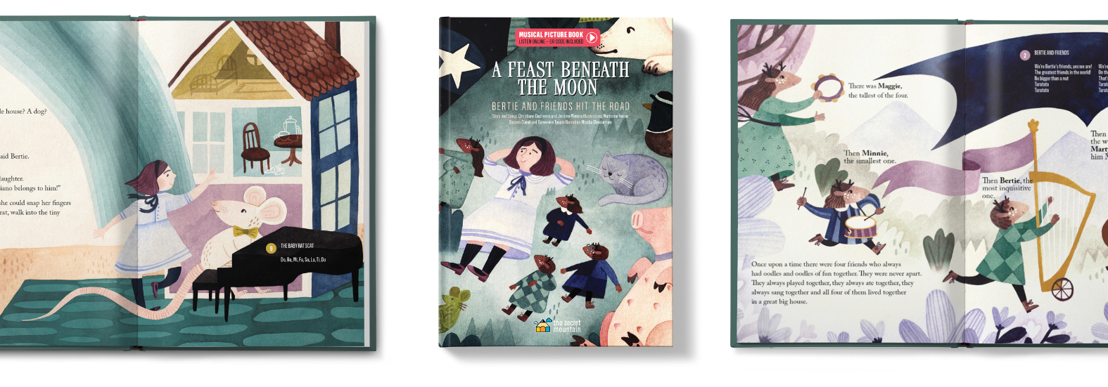 When the lyrics found their music, we submitted the project to Roland Stringer, The Secret Mountain’s publisher. Obviously, there were too many songs for an album. That’s when he came up with the idea of doing two books and linking the songs to a story.