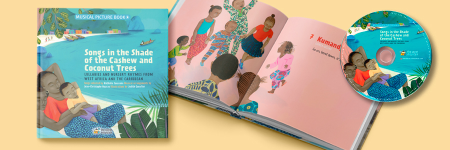 Additional musical picture books from our world music lullaby and nursery rhyme collection: Songs from the Baobab (West Africa), Songs from the Garden of Eden (Jewish), Songs in the Shade of the Olive Tree (Maghreb), Songs in the Shade of the Flamboyant Tree (French Creole) and Songs from a Journey with a Parrot (Brazil & Portugal)