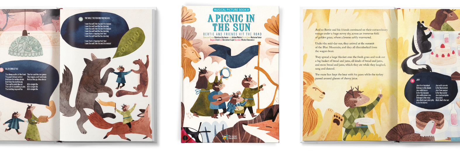 Bertie and his buddies never get bored with each other… except for the time when it rained for four straight weeks! The journey to the faraway destination won’t be easy, but with a little help from newly made animal friends, they make it to the summit, which happens to be the best place in the whole world for a picnic! An imaginative musical tale interspersed with 18 original and traditional songs.
