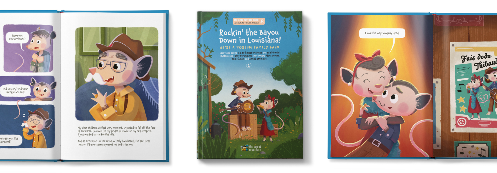Mama and Papa Possum tell the story of how they first met and where their glory days as a musical duo began! Take a trip to the bayou in this side-splitting, toe-tapping tale that pays homage to Louisiana’s Cajun and Zydeco music traditions. The first story from a series that follows these two plucky marsupials on travels that bring them to the birthplaces of Cajun, jazz, country, rock’n’roll, blues, and traditional Quebecois music. At the end of each book, explanatory notes delve into the key figures, instruments and customs behind each genre.