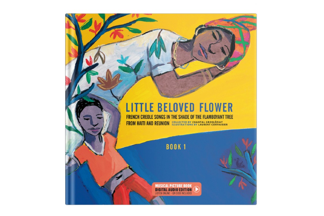 Imagine a daily island hubbub with warm breezes, salt water and music flowing through towns and countryside. Twelve traditional French Creole lullabies and nursery rhymes from Haiti and Reunion pay homage to community, family ties, work, love and life’s passages. The melodies included celebrate history, language and culture, with sounds of indigenous instruments alongside performances of women, men and children. Colourful illustrations of tropical animals, magical characters, people and places complete this collection that whisks readers away on a fanciful journey. Lyrics appear transcribed in their French-Creole dialects and translated into English, followed by educational notes on the cultural background of each song.